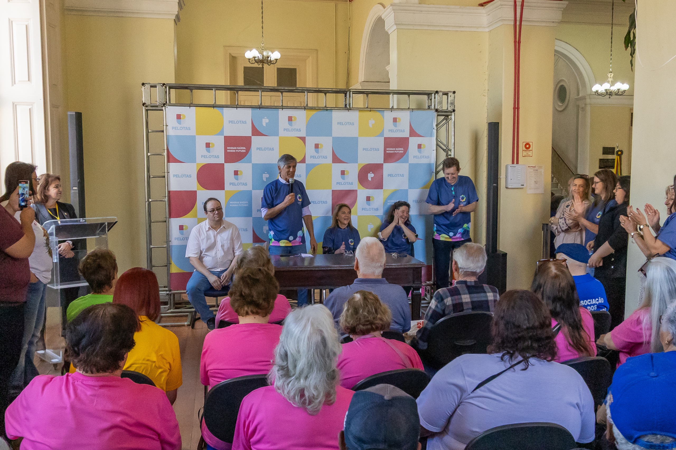 Ocorreu nesta terça-feira (14), no salão Frederico Trebbi, na sede do Executivo, a Plenária Festiva alusiva ao Mês da Pessoa Idosa. A ação foi promovida pelo Conselho Municipal da Pessoa Idosa com o apoio da Prefeitura de Pelotas, por meio da Secretaria Municipal de Governo, e teve como objetivo apresentar à comunidade o diagnóstico da estratégia da cidade amiga da pessoa idosa.