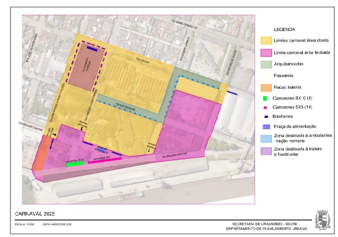O encontro desta segunda deteve-se no zoneamento geral da Passarela do Samba do Carnaval de Pelotas 2026, mantendo os mesmos espaços da edição passada - concentração, dispersão, passarela, arquibancadas, camarotes e arredores (conforme o mapa) -, mas o grupo avalia se, para maior segurança de todos, o melhor não seria permitir somente a circulação de pedestres em cada zona, impedindo o acesso de veículos em toda a grande área.