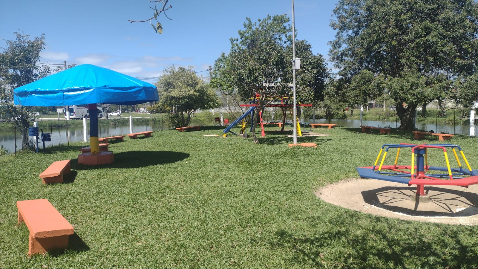 Nesta sexta-feira (03), foi reaberta a praça de recreação infantil disponível no terminal rodoviário, após a conclusão de obras. O espaço contou com uma série de reformas, com todos os brinquedos passando por manutenção, entre consertos e pinturas, a reconstrução da ponte de madeira que dá acesso ao local através do lago e a substituição das pedras da calçada interna.