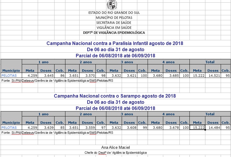 Os percentuais de crianças de 2 e 3 anos também superaram a meta geral. Apenas a faixa dos pequenos de 1 ano é que ficou abaixo do desejado: 85% foram protegidos do sarampo e 86% da pólio. Por atingir a meta, a Campanha é oficialmente encerrada em Pelotas, mas as vacinas ainda podem ser encontradas nos postos de saúde e no Centro de Especialidades.