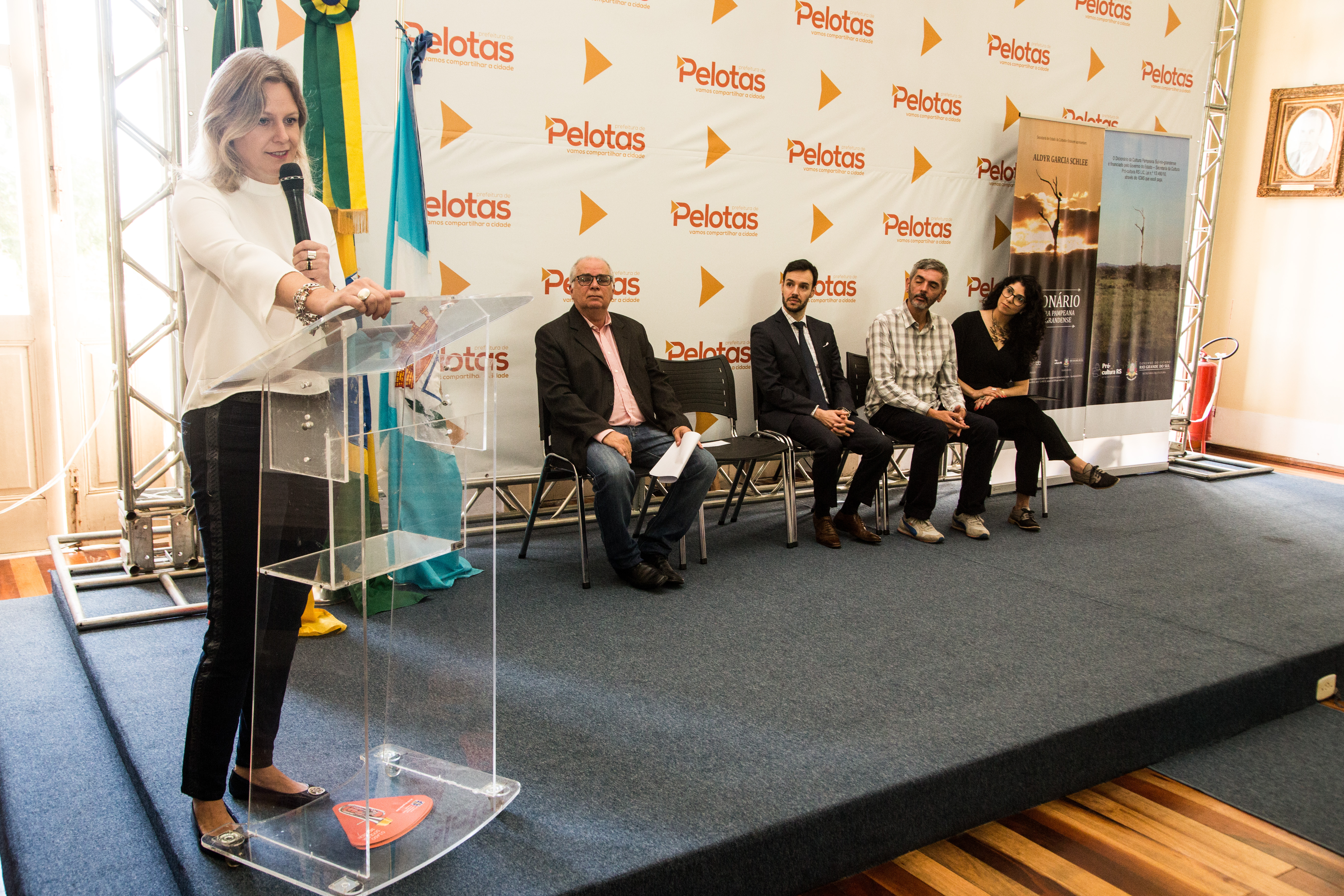 A população de Pelotas terá três meses para votar e escolher o nome do Salão Nobre da Prefeitura. O anúncio da eleição foi feito pela prefeita Paula Mascarenhas, durante o lançamento do livro ‘Dicionário da Cultura Pampeana Sul-Rio-Grandense’, de Aldyr Schlee, nesta terça-feira (9). Paula explicou que a nova denominação busca homenagear o escritor, jornalista e professor jaguarense, falecido em novembro de 2018.