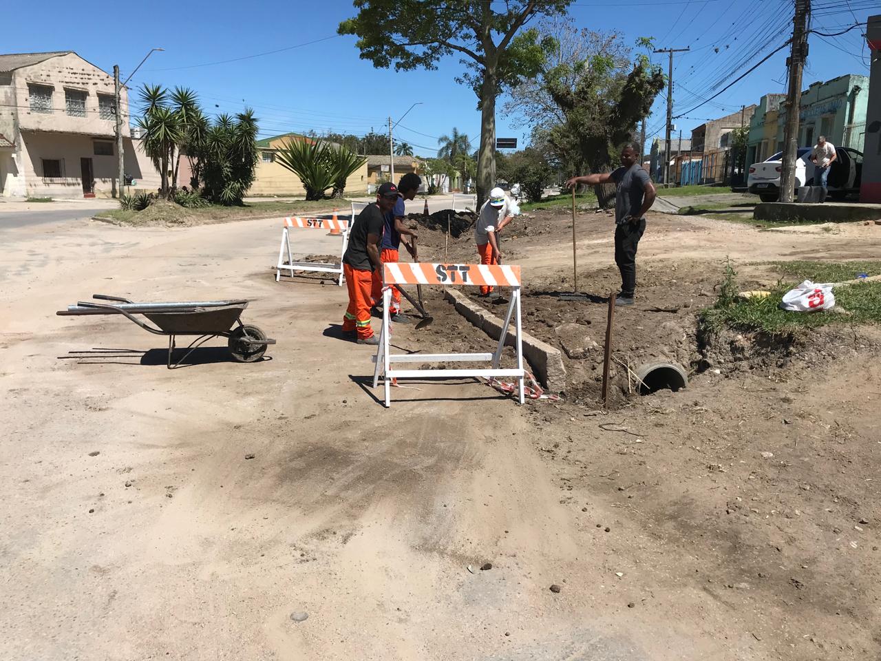 Ao mesmo tempo, uma terceira equipe deu continuidade, pelo quarto dia, de uma ação integrada com a Secretaria de Serviços Urbanos e Infraestrutura (Ssui) e o Serviço Autônomo de Saneamento de Pelotas (Sanep), que está sendo realizada no entorno do monumento Cacimba da Nação, no largo localizado no encontro das avenidas Domingos de Almeida e Barão de Correntes e rua Capitão Nelson Pereira, no Areal.