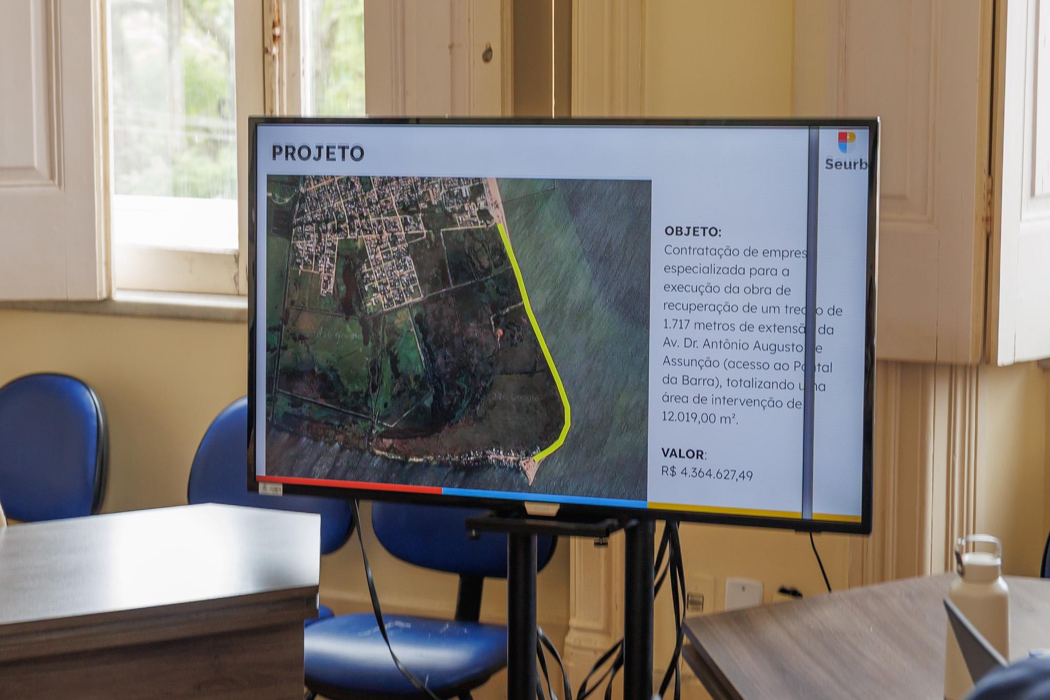 O projeto prevê a reconstrução completa da estrutura viária, utilizando pavimentação em solo-cimento com reforço de base, composta por sub-base de saibro, base de argila e capa de rolamento em solo-cimento, além de manta geotêxtil e enrocamento (material em pedra graduada) para proteção lateral ao longo da orla, bem como o plantio de grama nos taludes em toda a extensão.