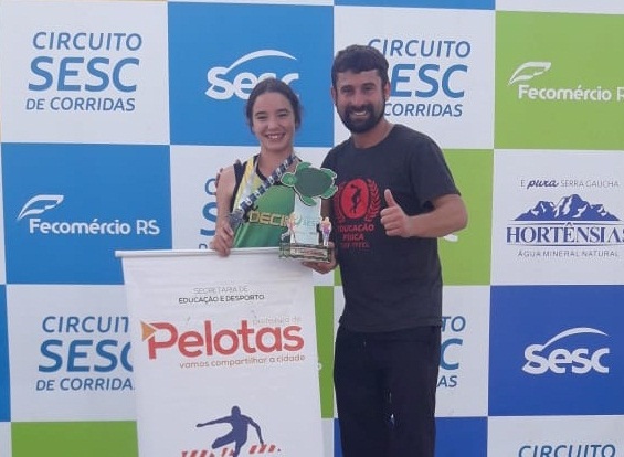 A atleta de 19 anos realizou a prova em tempo excelente, de acordo com o professor da Secretaria de Educação e Desporto, Huibner da Silva: 10 minutos e 42 segundos – 58 segundos antes da segunda colocada. O gerente do Sesc/Pelotas, Luis Fernando Parada, entregou o troféu à jovem, que vem sendo reconhecida no município pelos resultados em competições locais.