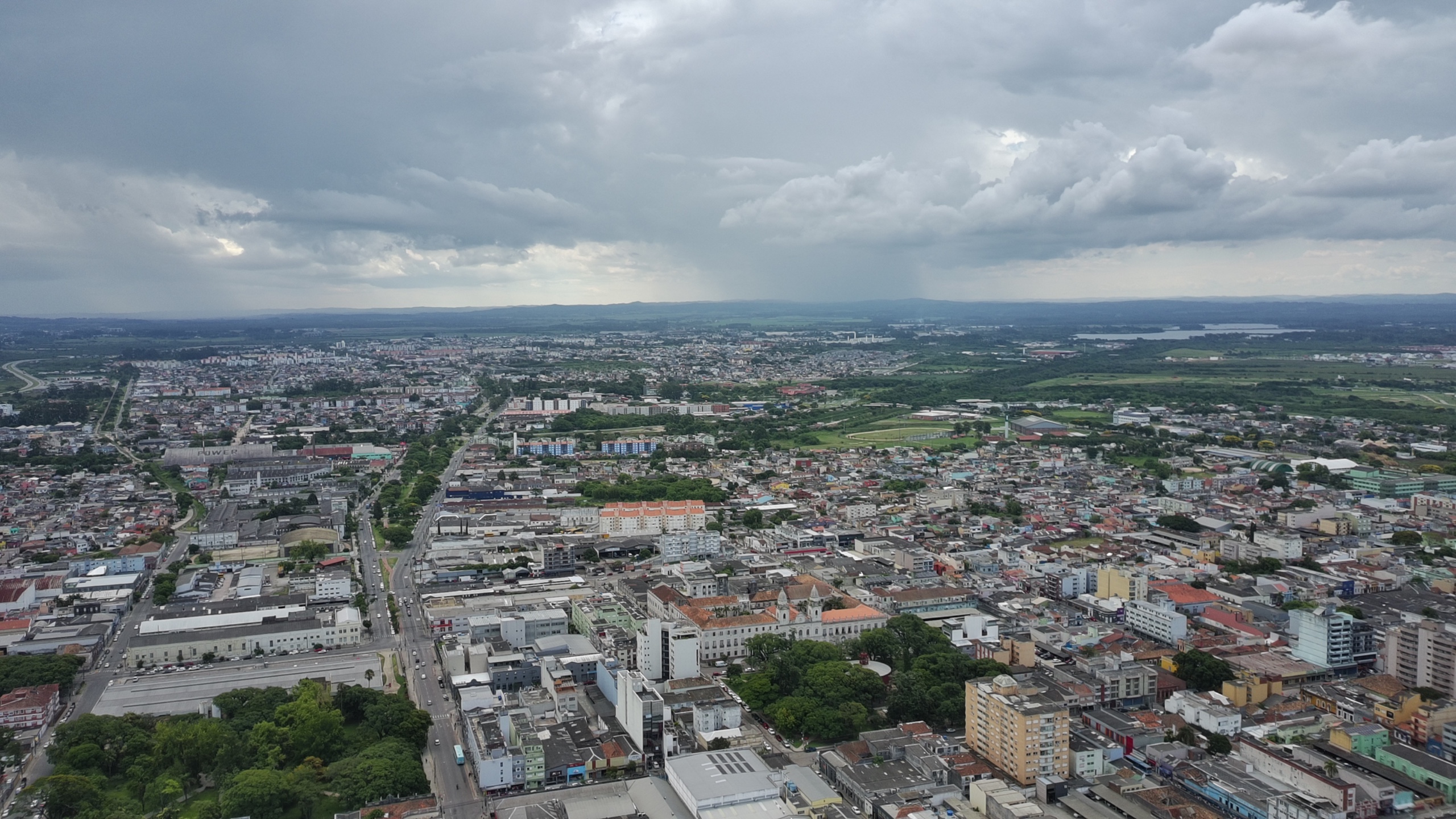 Imagem aérea mostra parte do centro e da zona oeste da área urbana de Pelotas. Município assegurou em 2025 recursos junto ao PAC e ao Funrigs para execução de obras estruturantes a partir de 2026 (Foto: Volmer Perez/Secom)